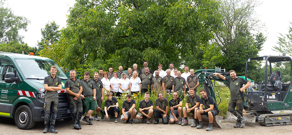 Uns eint die Liebe zur Natur und zu den Menschen, die in und mit ihr leben. Und wir stellen uns gern Herausforderungen. Von der Gartenplanung, Aussaat, Anpflanzung und Pflege über das Anlegen von Teichen, Natursteinbauten oder einer Dachbegrünung bis hin zum Pflastern von Wegen und Plätzen, Baumfällen oder einem zuverlässigen Schneeräumdienst – Ihre Wünsche, Ihr Grundstück und Ihr Garten sind bei uns in besten Händen.